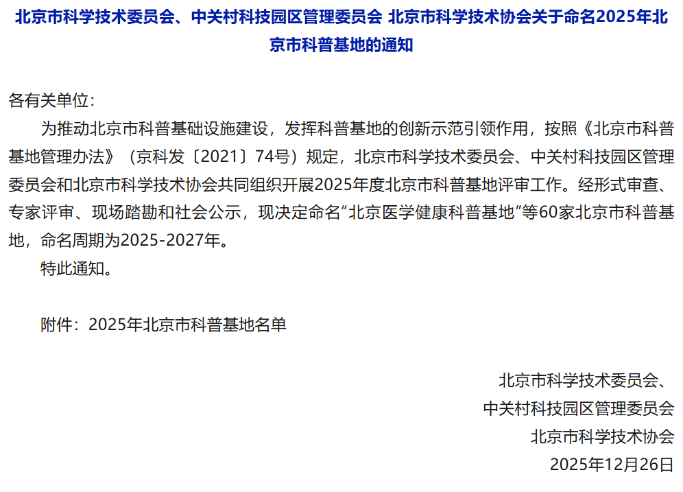 60家|关于命名2025年北京市科普基地的通知