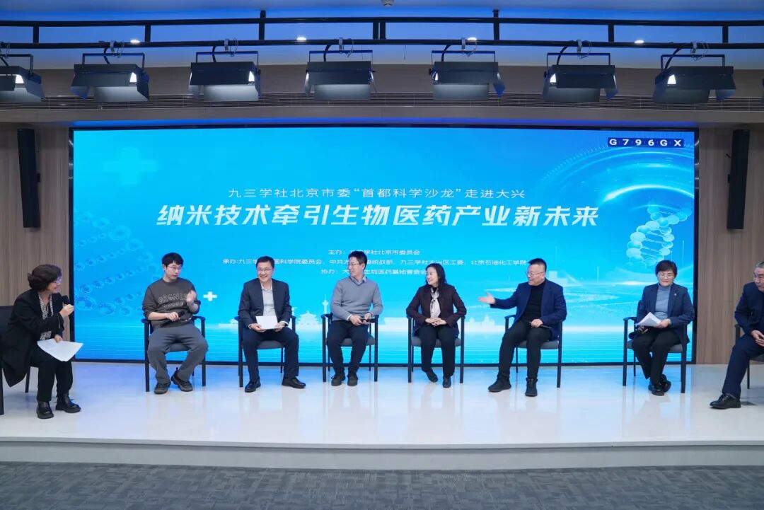 活动通过主旨报告与深度对话,共探前沿科技与产业实践的融合发展路径。主旨报告环节,陈春英作题为《纳米医药创新发展和机遇》的报告。北京三元基因药业股份有限公司董事长程永庆以《创新药物的商业化策略与实践》为题,分享了从实验室研发到市场成功的宝贵经验。在“科学家-企业家深度对话”环节,陈春英、程永庆与来自北京石油化工学院、大兴生物医药产业基地管委会、国家(中关村)火炬科创学院医疗科技成果转化基地等5位嘉宾,围绕纳米材料、药物递送、组织再生等方面展开对话。